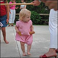 Caroline, walking behind a walker!
